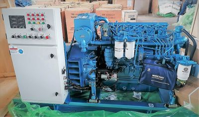 Шкаф управления судовой электростанцией, состоящей из 2х и более ДГ; подогрев с терморегулятором; глушитель-искрогаситель; насос откачки масла; комплект гибких шлангов для подключения к судовым системам.