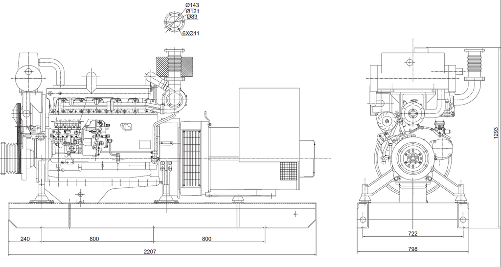 Система охлаждения двухконтурная с водо-водяным и водо-масляным охладителями с насосом внешнего контура; система электропроводки – двухпроводная; зарядный генератор; электростартер 24В; топливные двухконтурные трубопроводы; сборник топлива с датчиком утечки; система контроля, защиты и АПС с местным и дистанционным пультами управления; анти конденсатный подогреватель, аккумуляторная батарея, упаковка в ящик; техническая документация (инструкция по эксплуатации на русском языке, каталоги запчастей).