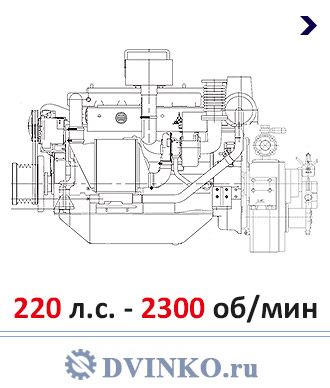 со встроенным термостатом и расширительным баком, центробежный насос внутреннего контура, самовсасывающий насос наружнего контура, водомасляный охладитель, масляный фильтр сепаратор, ТНВД P-типа, двухконтурные топливные трубопроводы со сборником и датчиком утечки топлива, эл.-магнитный клапан останова двигателя, два топливных фильтра тонкой очистки с возможностью переключения и смены на ходу, моющийся воздушный фильтр, турбокомпрессор оптимизированный для морского применения, изолированный выпускной коллектор, компенсатор выхлопного коллектора, двухпроводная электрическая схема с зарядным генератором, электростартер 24В, реверс-редукторная передача, соединительная муфта редуктора, местные приборы контроля, охладитель масла редуктора, комплект ЗиП(запасные форсунки, фильтра, прокладки), деревянная упаковка, технические документы(формуляр, инструкция по эксплуатации).