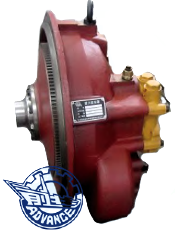Гидротрансформатор крутящего момента YJ380 пред-ставляет собой трехэлементный гидравлический преобразователь, диаметр окружности 380, напрямую соединен с двигателем, фланцевым выходом и тремя портами вала отбора мощности.