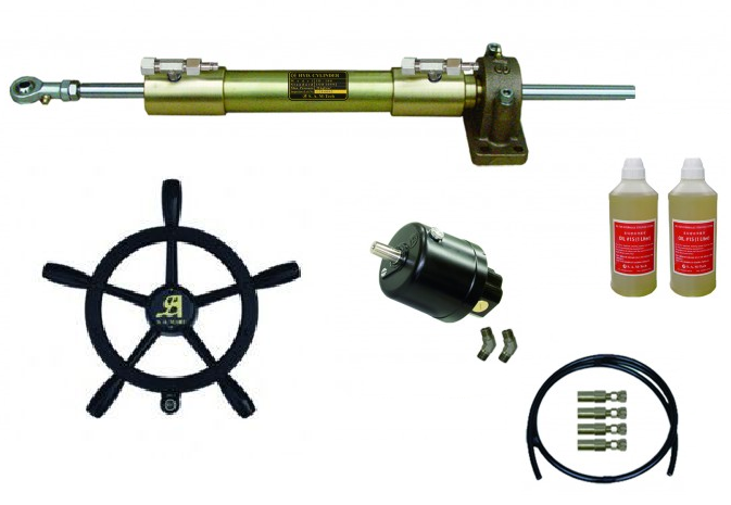 Гидравлическая система рулевого управления для подвесного лодочного двигателя. Управляется ручным рулевым насосом типа SOH производительностью 18, 25, 35 см.кубических с гидроцилиндрами ID-100, SDC-98, SDC-99