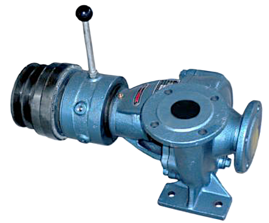 Для включения насоса достаточно повернуть рукоятку сцепления, чтобы гайка сцепления привела фрикционный конус в движение и тогда мощность от шкива будет передаваться на фрикционную цепь через силу трения.