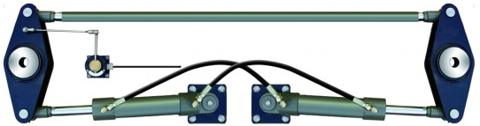 Двухцилиндровый блок рулевой системы для водоизмещающих транспортных, пассажирских, рыболовных судов с двумя двигателями. Устанавливаются в составе гидравлической системы управления судном. Применяются на море, на реке, на судах типа МРС-150, Ярославец, Костромич и других. Сделано в Кореи