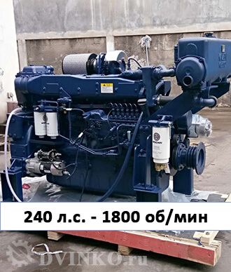 Система контроля, защиты и АПС двигателя серия ED211, соединительный кабель 25 метров, пульт ДУ с соединительным экранированным кабелем, шкив отбора мощности, водо-водяной холодильник со встроенным термостатом и расширительным баком, центробежный насос внутреннего контура, насос забортной воды системы охлаждения наружного контура, водомасляный охладитель, два масляных фильтра с возможностью переключения и замены на ходу, топливный фильтр-влагоотделитель, ТНВД P-типа, двухконтурные топливные трубопроводы со сборником и датчиком утечки топлива, эл.-магнитный клапан останова двигателя, два топливных фильтра тонкой очистки с возможностью переключения и смены на ходу, моющийся воздушный фильтр, турбокомпрессор в изолированном кожухе, промежуточный охладитель наддувочного воздуха охлаждаемый забортной водой, изолированный выпускной коллектор, компенсатор выхлопного коллектора, двухпроводная электрическая схема с зарядным генератором, электростартер 24В, набор инструментов, комплект ЗиП (запасные, фильтра, прокладки), двигатель на транспортировочных лапах закреплен на поддоне и упакован в фанерный ящик, технические документы (формуляр, инструкция по эксплуатации двигателя, инструкция по эксплуатации панели управления и АПС, каталог ЗиП).